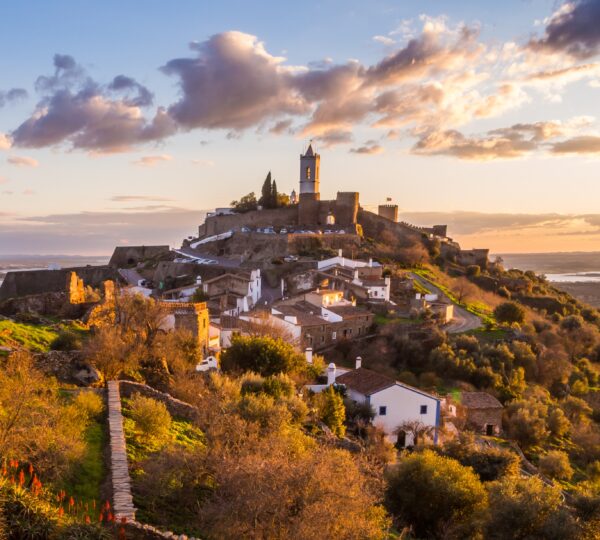 With its sweeping vistas of the Lake of Alqueva and untouched medieval streets, Monsaraz is one of the most charming hilltop villages in Portugal. Centuries of tales are revealed in its white-painted houses and castle walls.